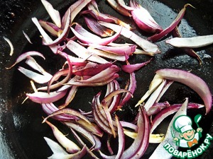 Опустить ломтики груш в масло с сахаром и слегка закарамелизировать с двух сторон. Вынуть на салфетку.