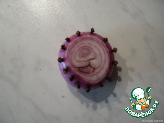 В луковицу втыкаем гвоздику, как на фото.