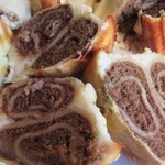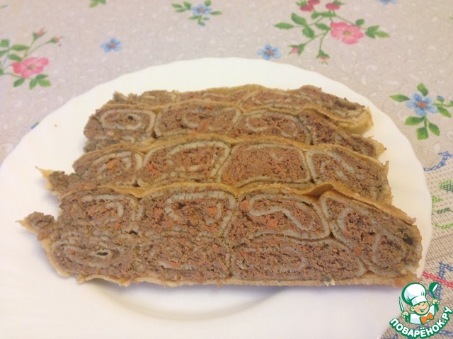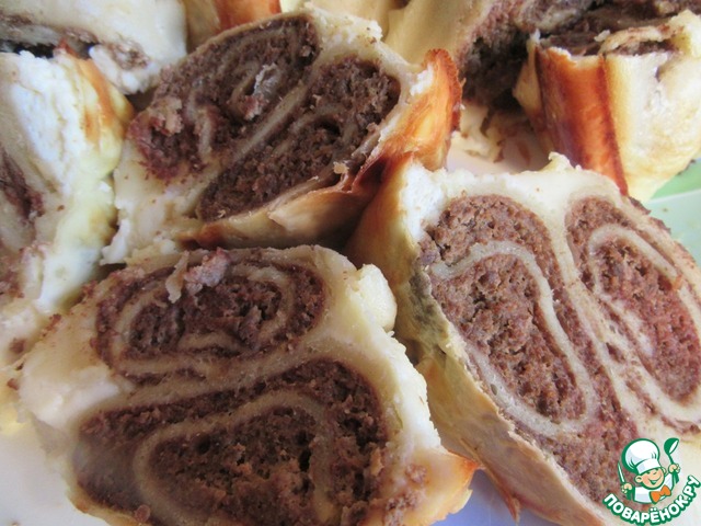 Время запекания будет зависеть от фарша и от количества слоев рулетиков.