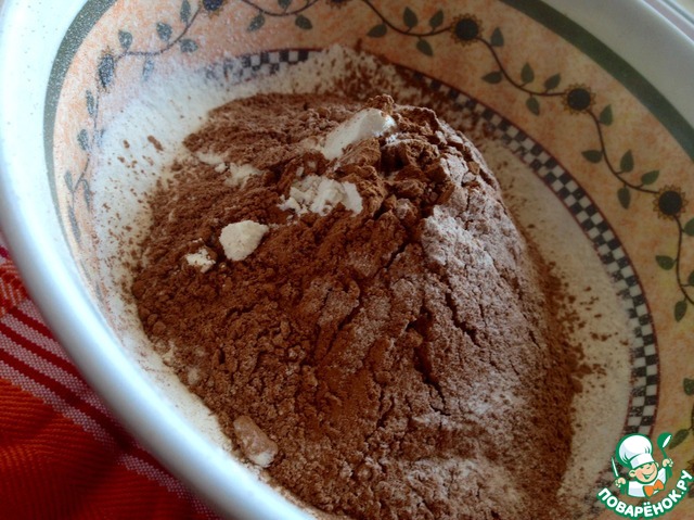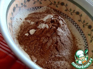 В миску просеять вместе муку, какао и щепотку соли, перемешать.