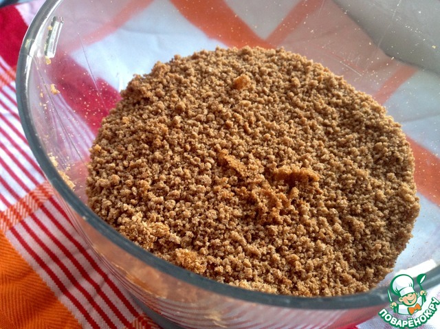 Измельчить бисквит в чаше блендера в мелкую крошку.