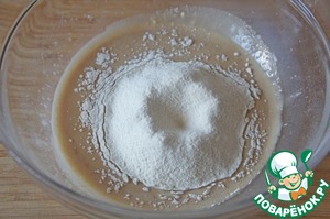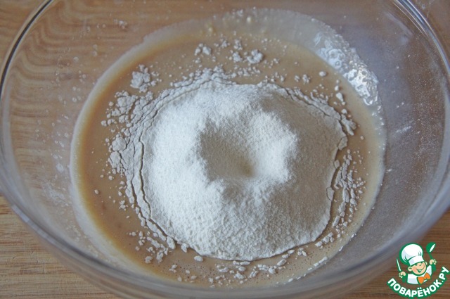 Просеять 100 г муки и снова хорошо перемешать. -