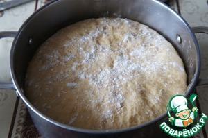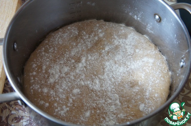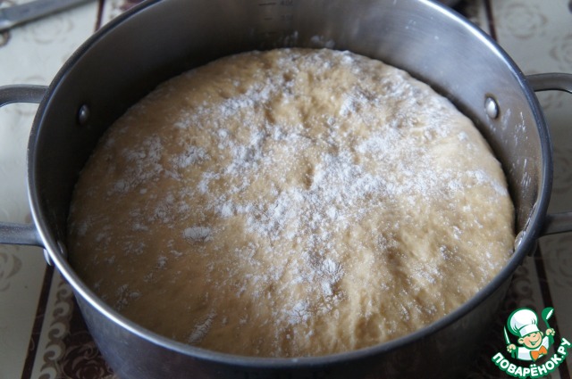 Положить его в большую глубокую кастрюлю (у меня 4,5 л), накрыть и убрать в теплое место на 2 часа.