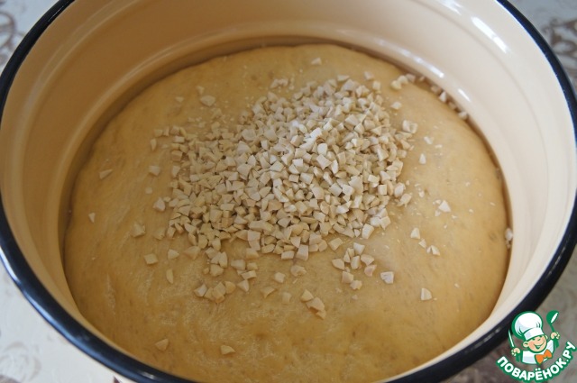 Всыпать нарезанный миндаль и вмесить его в тесто. -