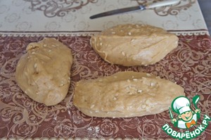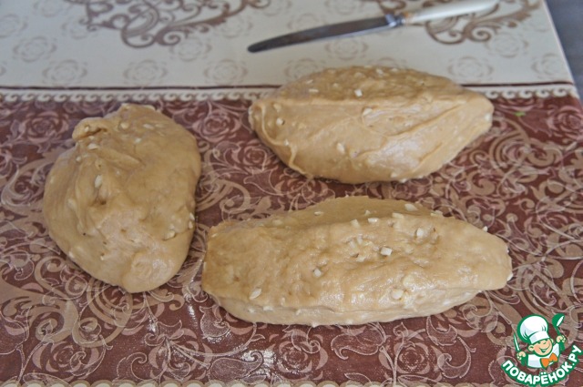 Разделить тесто на три части.