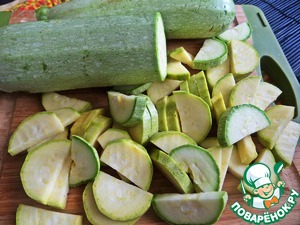 "Молочные" кабачки промыть, обсушить и нарезать как нравится вместе с кожицей. Я отрезала кружочки и делила пополам, но можно кубиками.