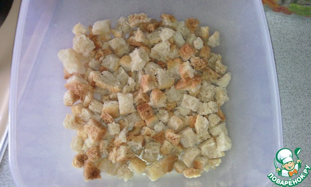 5. Во время еды добавлять сухарики. Сухари можно насушить самим в духовке, нарезав хлеб маленькими квадратиками.
