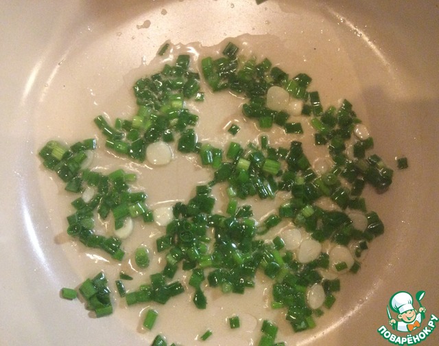 Лук мелко нарезать. Чеснок порезать лепестками. На сковороде разогреть растительное масло и обжарить лук и чеснок в течение 1 минуты.