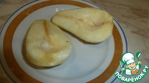 Груши почистить от кожуры и семечек, сбрызнуть сверху лимонным соком.