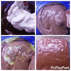 • Вводим белки в основную массу. Добавляем растопленное сливочное масло. Аккуратно перемешиваем.