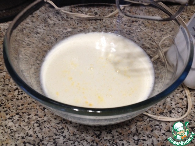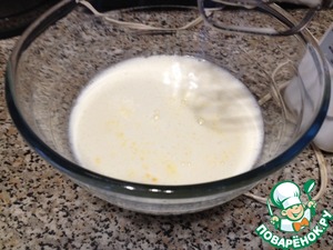 Продолжая взбивать, добавляем 1 ст. сметаны и 1 ст. кефира