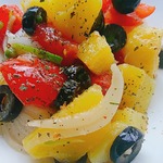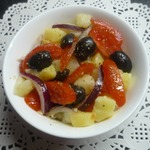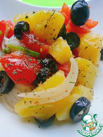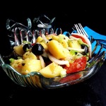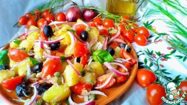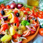Салат "Пантеска" - это типичное холодное блюдо Сицилии и характерно более для острова Пантеллерия. Салат назвала "А-ля Пантеска", так как в оригинале нужны каперсы, красный лук и помидор сорта "даттерини" или "пакино" я обошлась без них.