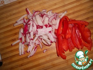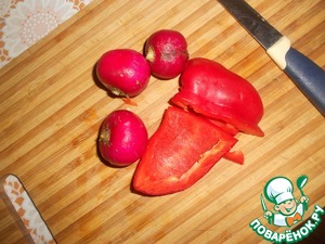 В миску выложить все нарезанные овощи и отварную фасоль. Посолить, поперчить.