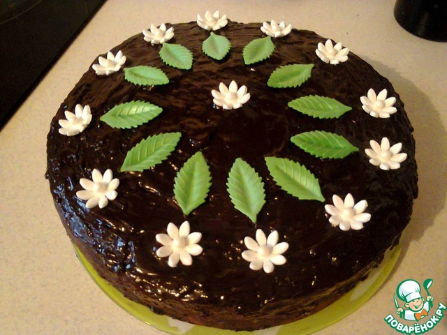 Остудить глазурь до теплого состояния, полить торт и снова отправить в холодильник.
