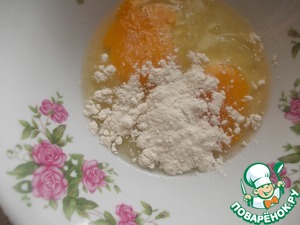 Отдельно делаем кляр, взбиваем яйца с мукой.