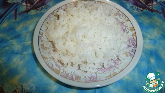 • Надо отварить рис до готовности.