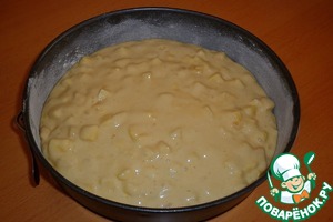 В смазанную растительным маслом и присыпанную мукой форму выложить тесто (диаметр моей формы 22 см).