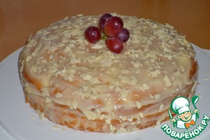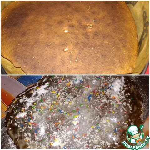 Пока мы готовили крем, наш бисквит испёкся. Готовый бисквит остудить на решётке, затем разрезать вдоль на 2 части и смазать кремом.