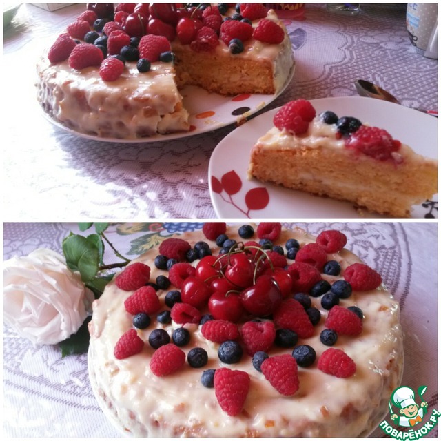 Готовила очень часто сливовый пирог http://www.povarenok .ru/recipes/show/125 885/ и захотелось чего-то нового, но так же "маложирног о". И родилась идея этого лёгкого торта. К лёгкости относится не только приготовление, но и очень низкое содержание жиров. Для изготовления бисквита нам потребуются всего лишь 2 ст. л. растительного масла, а крем мы приготовим без масла. Несмотря на незатейливый список ингредиентов, это очень вкусный торт.
