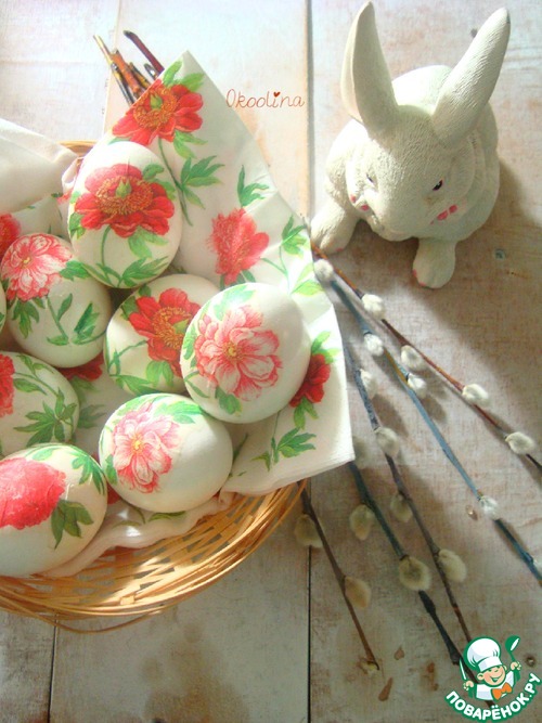 Как я делаю пасхальные яйца. Понадобится совсем немногое: 10 яиц, один белок, кисточка и одна красивая салфетка.