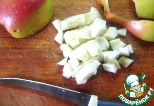 • Половинку яблока, очистить от кожуры и нарезать небольшими кусочками.