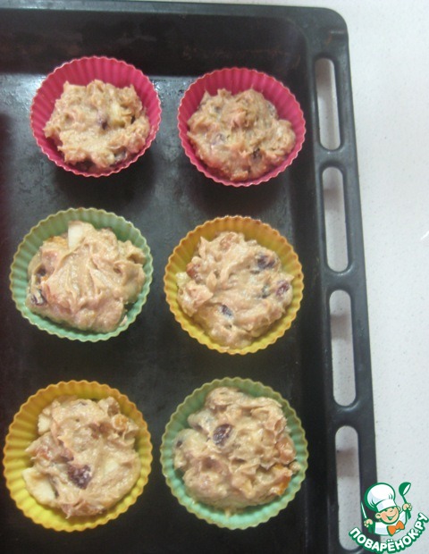 • Раскладываем тесто по формочкам (у меня силиконовые их я не смазывала) и отправляем выпекаться в разогретую до 180 градусов духовку на 30 минут. Готовность проверяем деревянной палочкой.