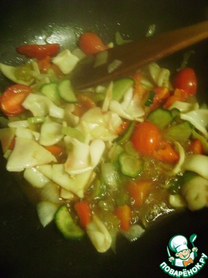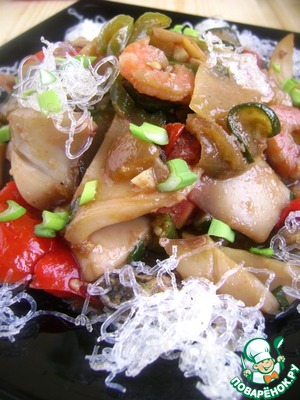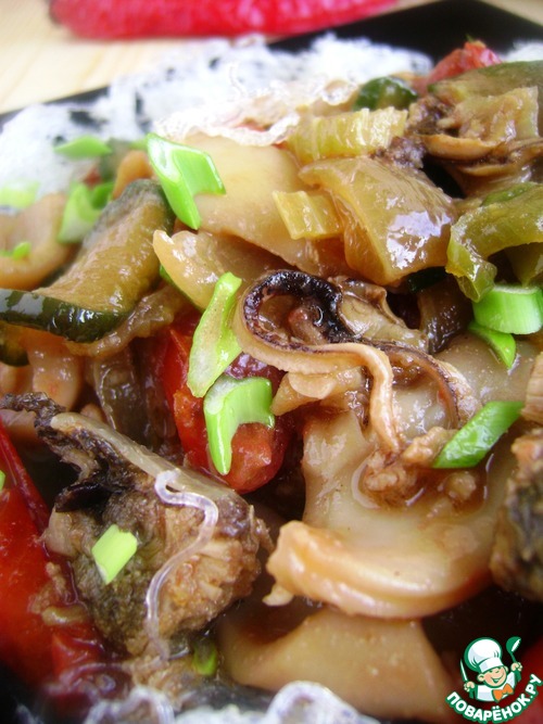 Морепродукты с овощами в остром соусе
