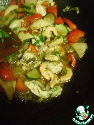 Рецепт «Морепродукты с овощами в остром соусе»: