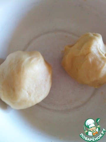 Для теста мягкое масло растираем с сахаром, добавляем муку и замешиваем тесто. Делим на 2 части