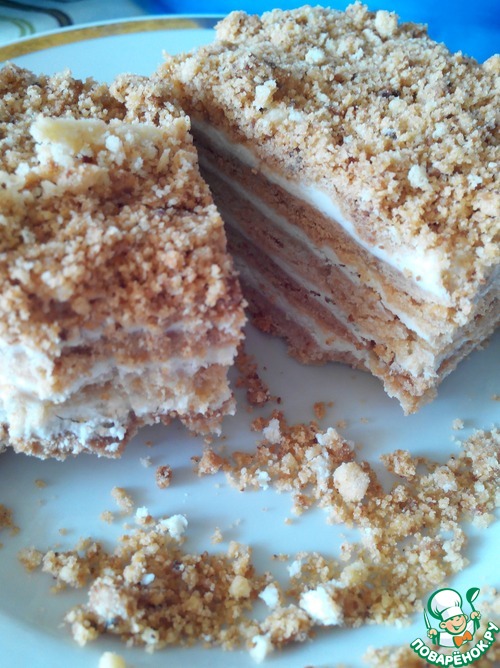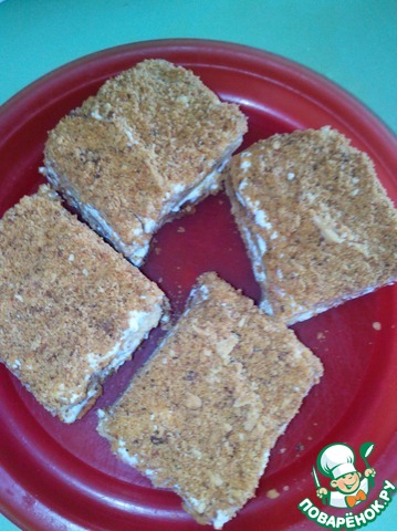 Разрезаем пополам и снова складываем, чтобы получилось 4 коржа.