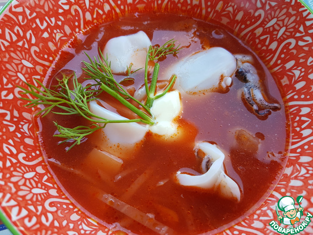 Рецепт «Постный борщ с кальмарами»:
