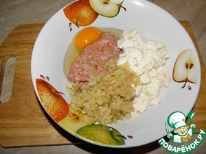 Добавить к фаршу лук с чесноком, яйцо, хлеб в молоке (хлеб не отжимаем! Вместе с молоком!) Соль, перец. Хорошо перемешать.