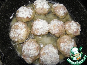 Мокрыми руками сформировать фрикадельки, обвалять в муке.