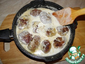 Заливаем соусом фрикадельки, доводим до кипения,