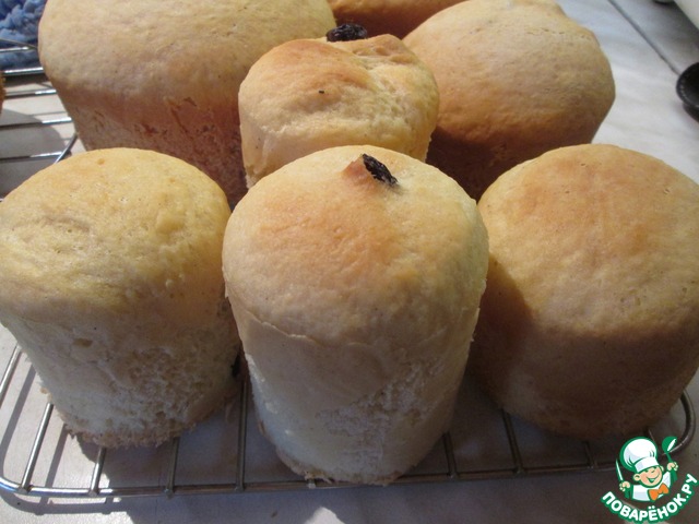 Разогреть духовку до 200 градусов и выпекать куличи до готовности. Остудить на решетке. На фото куличи из форм.