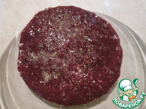 Печень перекрутить на мясорубке или измельчить в блендере. Посолить, поперчить.