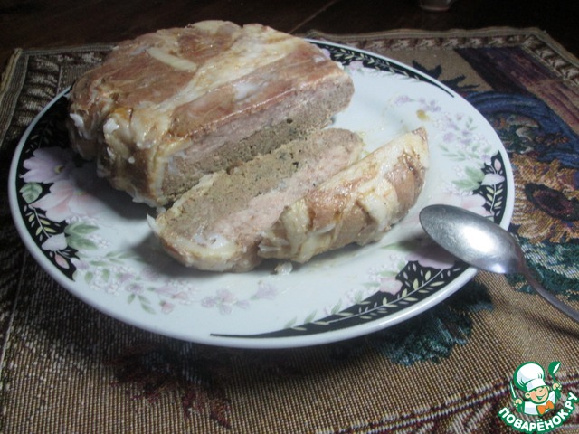 Закрыть паштет полосками бекона, форму накрыть фольгой и поставить в разогретую до 180 градусов духовку на 1,5 часа. Готовый паштет полностью остудить в форме.