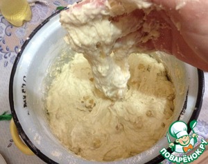 Вот теперь достаем муку. Но, главное не забить тесто мукой! 2/3 муки смело добавляем, дальше по чуть-чуть. Должно получиться как на фото. Должно немного липнуть к рукам. Дальше ваш самый большой друг - подсолнечное масло. Смазать хорошо стенки посуды. в которой будет подходить тесто, да и от рук будет очень хорошо отходить.