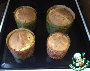 Отправляем наши куличи в разогретую духовку. Они должны хорошо зарумяниться. У меня на это ушло минут 45, вы смотрите по вашей духовке. Вынув из духовки оставьте их где-нибудь остыть. (В прошлом году они у меня сильно выползли, в этом немного не доползли :D )