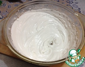 Приготовьте глазурь по любому рецепту, какой приглянулся. Я в этот раз попробовала рецепт глазури, автора поваренка, mtata. Я сделал ее чуть меньше, на два белка, половину стакана сахарной пудры, и под конец взбивания на 2-3 минуты, емкость с глазурью, в горячую воду.