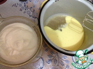 Желтки разотрите с сахаром. Белки взбиваем в пену и отставляем.