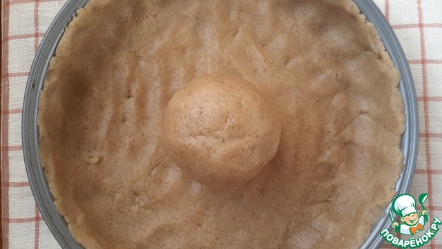 Добавляем яичный желток, холодную воду и замешиваем тесто. 2/3 теста вдавливаем в форму и делаем "края". Оставшуюся 1/3 теста скатываем в шарик. Форму с тестом и шарик ставим в холод на 15-20 минут.