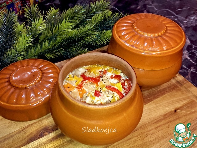 Накрываем крышечками и ставим в розогретую до 200 градусов духовку. Готовим до готовности (приблизительно 30 минут).