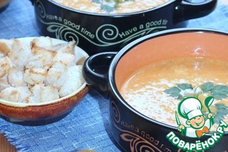 С помидоров снимаю шкурки (они хорошо отходят в кипящем супе), раздавливаю чеснок непосредственно перед подачей. Все!