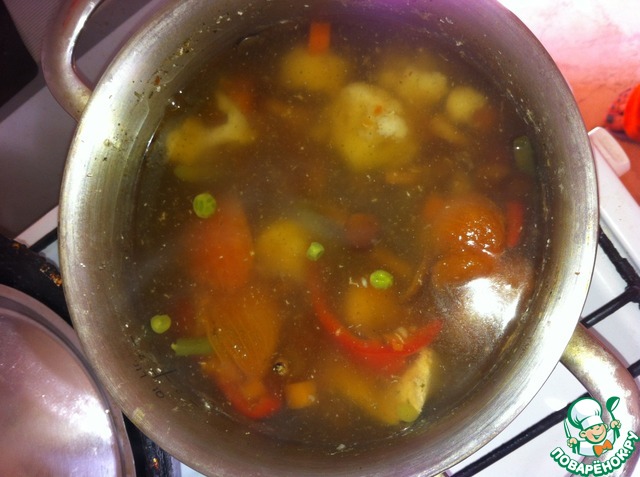 Простой, вкусный, низкокалорийный супчик - за счет отсутствия в нем всеми любимых картофеля и вермишели. Рецепт придумал муж, взяв из холодильника что было и загрузив все это в кастрюлю.