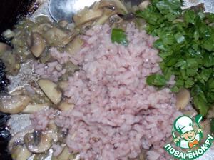 Грибы и лук нарезать, обжарить в 2-3 ст. л. растительного масла до готовности. Добавить отваренный рис, соль и перец по вкусу, немного петрушки. Перемешать, начинка готова.