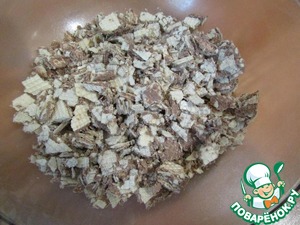Шоколадные вафли растолочь в достаточно крупную крошку.