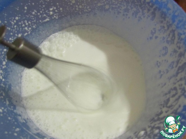 Охлажденные сливки взбить до устойчивых пиков. -