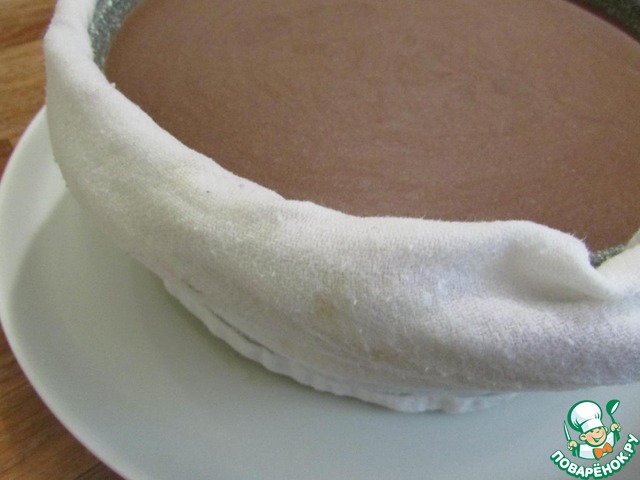 Затем круг от формы обмотать полотенцем, смоченным в горячей воде и отжатым.
