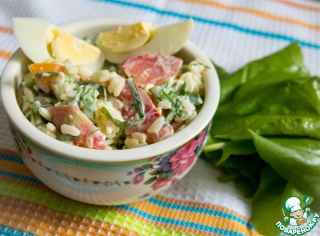Что могу сказать про этот салат? Он безумно нежный, невероятно вкусный и полезный! Понравился даже тем, кто не очень любит рис, в этом блюде он не играет главной скрипки. Рекомендую всем попробовать, это по-настоящему весенний и легкий салат!